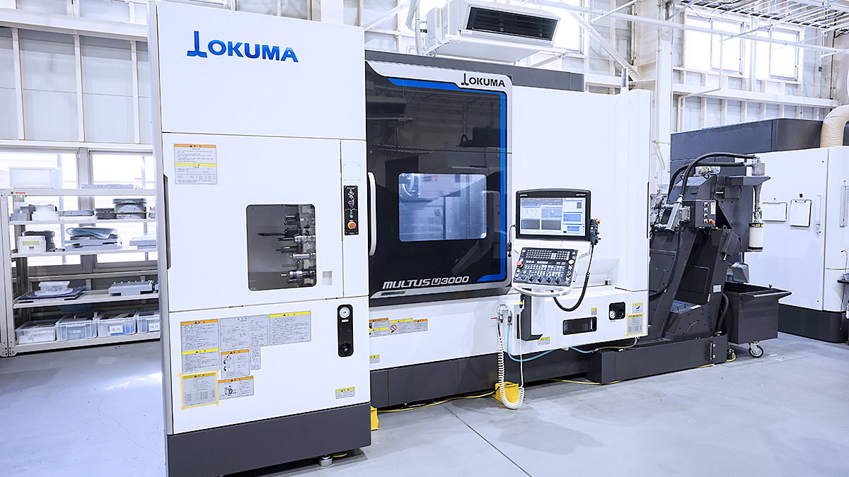 1台で「削る・回す・穴をあける」といった加工をまとめて行える複合加工機です。高精度な5軸制御と自動補正機能により、複雑な形状も安定して高品質に加工できます。